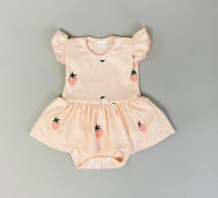 Боди-платье с коротким рукавом, розовое, Клубнички