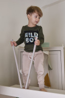 Однотонный лонгслив трендового оттенка зеленого цвета хаки для мальчика с фактурными выпуклыми буквами в расцветке камуфляж с надписью WILD BOY станет одновременно и удачной базой в гардеробе ребенка, и стильным акцентом, который не останется незамеченным.