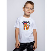 Базовая футболка белого цвета выполнена из тонкого 100% хлопкового трикотажа кулирная гладь. Материал дышащий и приятный на ощупь. Забавный принт котика в каске нанесен стойкой гипоаллергенной краской. Благодаря разноцветному принту футболка стильно дополнит любой низ.
