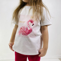 Белая футболка с дизайнерским принтом станет стильной базой в гардеробе девочки. Изготовлена из мягкого хлопкового трикотажа в небольшим добавлением лайкры.