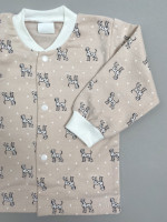 Вы можете выбрать один из четырех ярких цветов: какао, голубой, розовый или желтый, каждый из которых украшен принтом с далматинцами. Модель - унисекс, подходит для мальчиков и для девочек. Кофточки застегиваются на удобные кнопки, что облегчает процесс одевания вашего малыша.