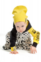 Смесовый состав трикотажной ткани кашкорсе на основе хлопка позволяет шапочке мягко облегать голову и сохранять форму после носки. Швы выполнены таким образом, чтобы не травмировать нежную кожу ребенка и не причинять беспокойства в носке. Шапка двуслойная, украшена трендовым вшивным брэндированным ярлыком в боковом наружном шве.